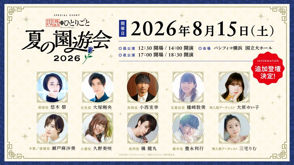 TVアニメ『薬屋のひとりごと』スペシャルイベント~夏の園遊会 2026~出演のお知らせ